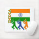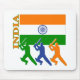 Três mostraram em silhueta jogadores indianos do grilo sob a bandeira indiana com o nome de país India ao longo do lado.
