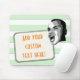 Que está em sua mente? Adicione sua indicação neste tapete do rato feito sob encomenda! Foto alterada Digital do homem novo que shouting seu texto em uma etiqueta retangular branca. O fundo é listras verdes pastel em toda a cor - você pode recolor o espaço entre as listras substituindo a cor básica do fundo dos produtos!