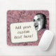 Que está em sua mente? Adicione sua indicação neste tapete do rato feito sob encomenda! Foto alterada Digital do homem novo que shouting seu texto em uma etiqueta retangular branca. O fundo é foto da textura cor-de-rosa da rocha.
