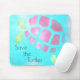 Salve a proteção do mouse Watercolor das tartarugas e coloque a mesa em destaque com esta pasta do mouse Save the Turtles. O design da tartaruga é cor de água rosa e verde com fundo azul de aquarela. Personalize o estilo, o tamanho e a cor da fonte de texto. Personalize o mouse pad adicionando seu nome ou iniciais.