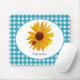 Um mousepad azul bonito do guingão com um girassol amarelo brilhante e animador com um vermelho pequeno bonito manchou o joaninha que senta-se em suas pétalas. Personalize adicionando seu nome a este design do estilo country sure para pôr o em um humor feliz do piquenique do verão!