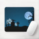 Feliz ilustração noturna do Dia das Bruxas com uma cena assustadora: fantasmas em um cemitério, corvo em um pedreiro e abóbora pendurados em uma árvore.