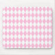 O clássico estilo tradicional do elegante padrão de diamantes Harlequin em rosa pastel contemporâneo e branco