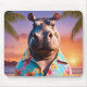 Curioso Hippopotamus vestindo uma camisa havaiana numa bela praia.