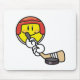 Os esportes do hóquei da cara do sorriso projetam com vara e disco de hóquei. O sorriso está vestindo um capacete do hóquei.