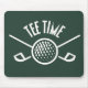 Golfistas Tee Time, este design apresenta um logotipo de golfe do tipo esporte Golfistas Golfers Tee Time com tacos de golfe e uma bola de golfe com texto dizendo "Tee Time".