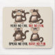 Não ouça nenhum mau, não veja nenhum mau, não fale nenhum mau, não tenha nenhum divertimento. Paródia dos 3 macacos sábios.