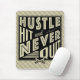 Hustle Baseball Atingiu e Nunca Saiu Do Mousepad Do Mouse. O texto diz: Hustle, Hit And Nunca Sair, com o ícone cruzado de tacos de beisebol e softball.