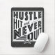 Hustle Baseball Atingiu e Nunca Saiu Do Mousepad Do Mouse. O texto diz: Hustle, Hit And Nunca Sair, com o ícone cruzado de tacos de beisebol e softball.