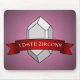 Esse produto apresenta um modelo de cristal de zircão, mineral acessório comum muitas vezes usado para datar rochas. O texto na faixa vermelha diz "I Date Zircons."