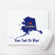 Uma silhueta azul, ou mapa, do estado do Alasca com o slogan "I Heart (Love) Alaska." Adicione seu próprio texto. Venha visitar A Terra Excelente.