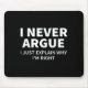 Mousepad I Never Argue Just Explain Why I'm Right Funny Sar