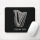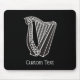 Ícone harpa preto e branco com decoração de nó celta. Texto Personalizado.