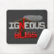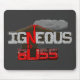 Este mousepad de humor geológico apresenta o trocadilho "Igneous is Bliss," um spin geológico na frase comum "Ignorância é Bliss." As letras são desenhadas como rocha cinza e magma vermelho, cristalino, mush abaixo de um vulcão ativo em erupção.