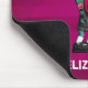 Um mouse pad com uma bela ilustração de menina zombie com cabelo rosa quente e pele verde-morta. Vestir o punk rock temido. Seus braços se estenderam em busca de cérebros. Colocado sobre um fundo magenta escura, com faixas desbotadas. Personalize com um nome.