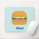 Um mouse personalizado para o amante do hambúrguer em sua vida (ou você mesmo!) projetado com uma ilustração de um simples hambúrguer. Tomate de alface e carne de vaca. Simples e delicioso.