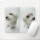 Tapete do rato com os filhotes de cachorro malteses brancos n a parte dianteira.