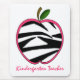 Um presente do professor de jardim de infância que caracteriza uma ilustração de uma maçã do impressão da zebra com guarnição cor-de-rosa. O texto cor-de-rosa sob a maçã diz de "o professor jardim de infância." Procure este design em outros artigos na escola cor-de-rosa.
