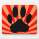 Uma pata de cachorro com feixes de luz em laranja e vermelho. Design original.