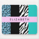 Padrão elegante, na moda e sofisticado de leopardo e zebra em cor azul. Presente moderno e moderno, perfeito para o amante da impressão animal em sua vida. Personalize adicionando o seu nome, apelido, monograma ou iniciais.