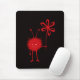 É mau, mas também é fofo. E adora flores... adora comê-las, na verdade. O Inseto da ventoinha do Mau. Mousepad com uma criatura de desenho vermelho segurando uma flor em fundo preto.