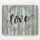 Inspiração de fazenda I por Jennifer Paxton Parker. Apresenta "Love" em roteiro com uma bela coroa verde e painéis de madeira em dificuldades.