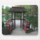 Estilo japonês no jardim rotativo local. atrás da porta está um lago pequeno e uma ponte que você atravessa até uma caminhada elegante para ver o resto do jardim.