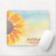 Este mouse floral é decorado com girassol amarelo, tipografia de na moda e fundo de aquarela. Facilmente personalizável. Original Watercolor © Michele Davies.
