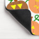 Este mouse pad tem um design de pinos-o-lanternas com diferentes faces se repetindo em cada trimestre.