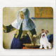 Mulher com Pitcher (1664-65), de Johannes Vermeer, adaptada para incluir Jack Russell Terrier.