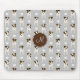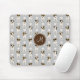Esta charmosa almofada personalizada de rato Jack Russell Terrier apresenta um padrão lúdico de "Jacks" com corações brancos num fundo de cinza de luz personalizável - os cães têm várias marcas de cabeça e corpo preto e marrom - personalizar com monograma - padrão Jack Russell Terriers © katz_d_zynes 2020
