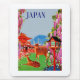 poster de viagens vintage do Japão mostrando veado e pagode ao fundo.