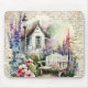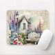 Este bonito mouse apresenta uma cabana branca em inglês, um belo jardim floral colorido e um fundo de letras antigas. Mais designs disponíveis no repositório! c) Paperie fina.