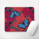 Padrão sem costura com borboleta azul-morfo desenhada à mão, hydrangea e peônias.
