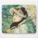 Jeanne (Primavera). Edouard Manet. Retrato de uma mulher em tons verdes. Há uma mulher parada numa colmeia com um guarda-chuva nas mãos e um chapéu fofo. Há árvores atrás dela. Reprodução de famosas imagens de arte no dominio público.