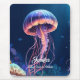 Mousepad jellyfish art, white script name and extra text