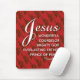 Na moda Natal JESUS PRINCE OF PEACE Christian Mouse Pad. Mousepad com na moda CHRISTmas design. A citação cristã inspiradora baseia-se em Isaiah 9:6 (para nós, Criança é nascer) em tipografia branca, com gráfico de árvore de Natal enrolado sobre fundo vermelho escuro. A palavra "Conselheiro" pode ser alterada para ortografia britânica. O verso da Bíblia é PERSONALIZÁVEL para que você possa substituí-lo pelos seus nomes.