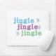 Um design único e simples em cartões de cartões de natal, mousepads, sacos de tota de férias, T-shirts, e mais com texto azul, verde e lavanda e flocos de neve que diz "Jingle Jingle Jingle"!