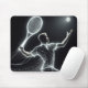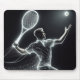Jogador de tênis masculino brilhante com raquete e bola em preto