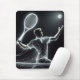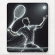 Jogador de tênis masculino brilhante com raquete e bola em preto