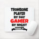 As características deste design de texto a frase de "jogador Trombone pelo Gamer do dia em a noite" e são perfeitas para todo o jogador de trombone que amar jogar jogos do vídeo ou de computador.