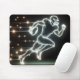 Jogador de futebol neon carregando a bola e corre com trilhas luminosas brilhantes e faíscas em fundo escuro