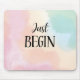 A gentle nudge to start where you are—this “Just Begin” quote design is set against a dreamy pastel watercolor background.