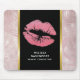 Um mousepad personalizado com seu nome e título. Projetado com um fundo composto por um padrão moderno de folhas tropicais de rosa de ouro. A camada superior é uma estrutura preta com borda de gradiente dourada, dentro são lábios brilhantes cor-de-rosa.