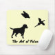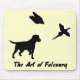 Silhouette de um Labrador e falcão trabalhando juntos como um. As palavras A Arte de Falconry abaixo.