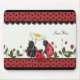 Tema de animais bonitos e caprichosos apresentando mãe, pai e joaninha para um passeio. A Sra. Ladybug tem um guarda-chuva de flores margaridas. Fundo de bolinhas vermelho e preto