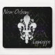 O tapete do rato de Nova Orleães com trabalho do ferro inspirou o design e as cores do carnaval.