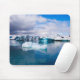 Grande mousepad decorado com uma fotografia bonita da lagoa da geleira em Islândia.
