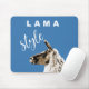 Retrato Lama sobre fundo azul e texto branco "Estilo Lama"