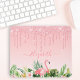 O moderno Elegante, mofável e o moderno Pink Blush Glitter Pad personalizado com seu Nome. Script de na moda. Coloque brilho com faíscas. Inclui Watercolor Tropical Floral, Folhas e Flamingo Rosa.